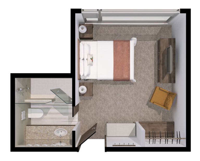 Three rooms are offered and located in the original wing of the lodge with two flights of stairs (no elevator access).