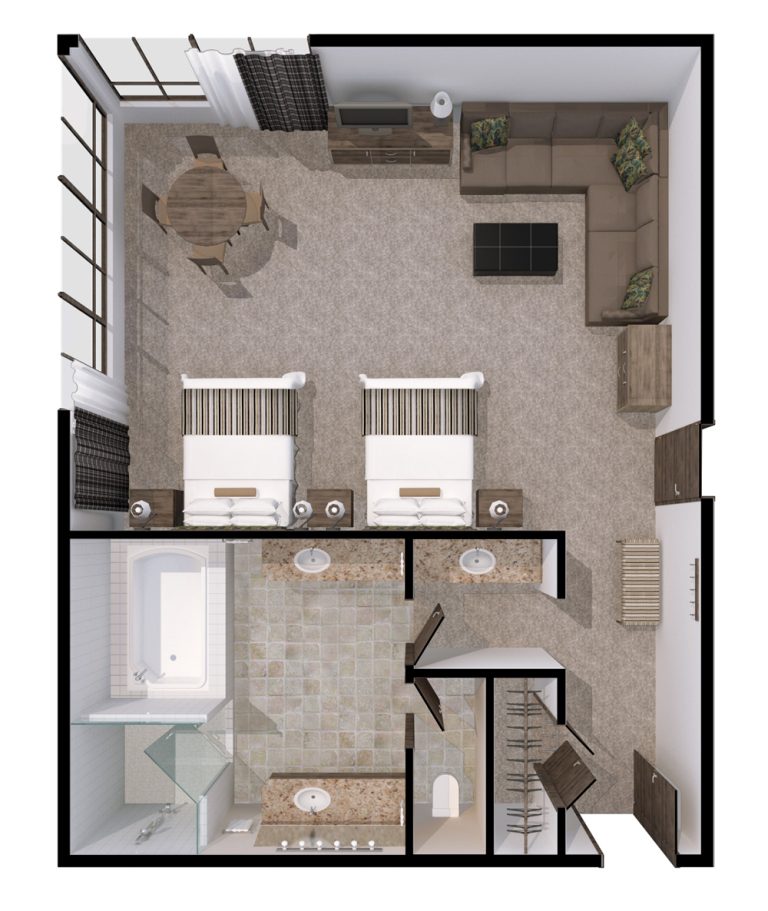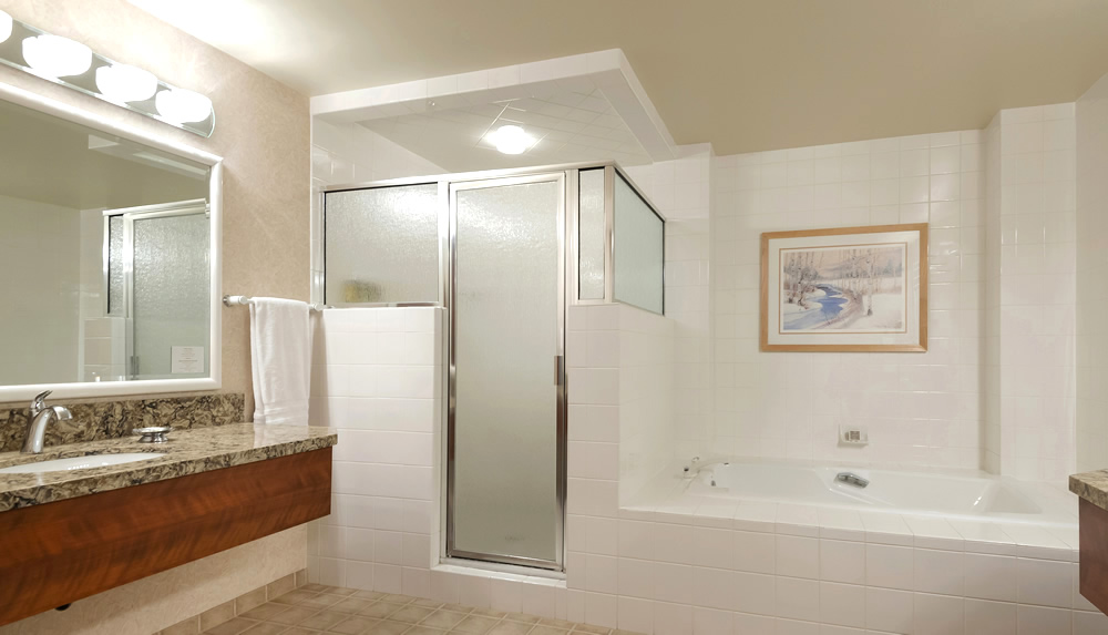 Spacious Bathroom with Shower, Soaking Tub and Inner and Outer Vanities