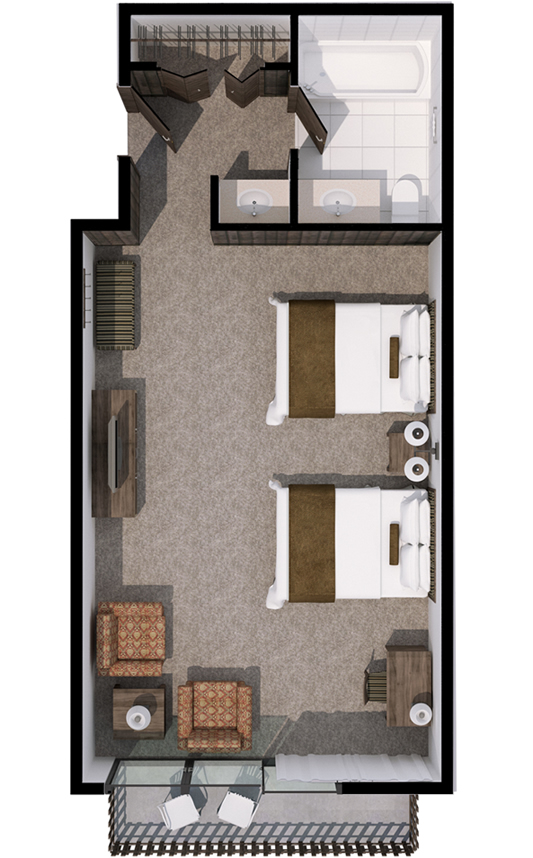 Our Wasatch Rooms have either one king-size bed and a queen-size sofa bed or two queen-size beds.